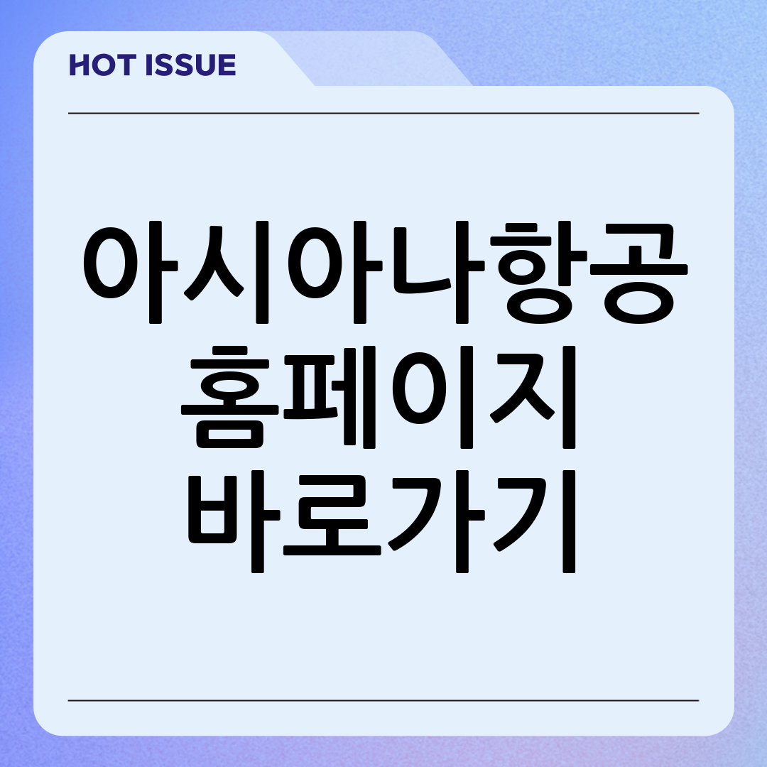 - 즐겨찾기 등록: 자주 이용하는 경우, 웹 브라우저의 즐겨찾기 기능에 아시아나항공 홈페이지를 등록해두면 클릭 한 번으로 쉽게 접속할 수 있습니다.